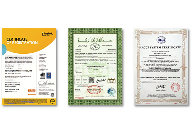 美燁所用設備設施均按出口食品生產(chǎn)企業(yè)注冊衛(wèi)生規(guī)范要求設計安裝,本公司已經(jīng)通過美國HACCP、英國BRC、清真HALAL認證,并在美國FDA、歐盟、俄羅斯等注冊備案,現(xiàn)...